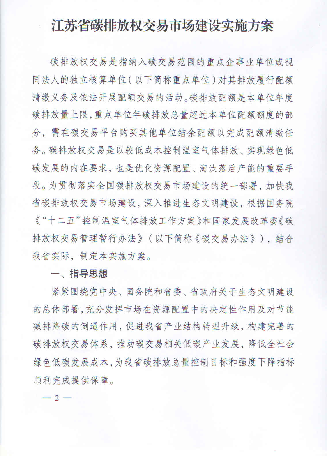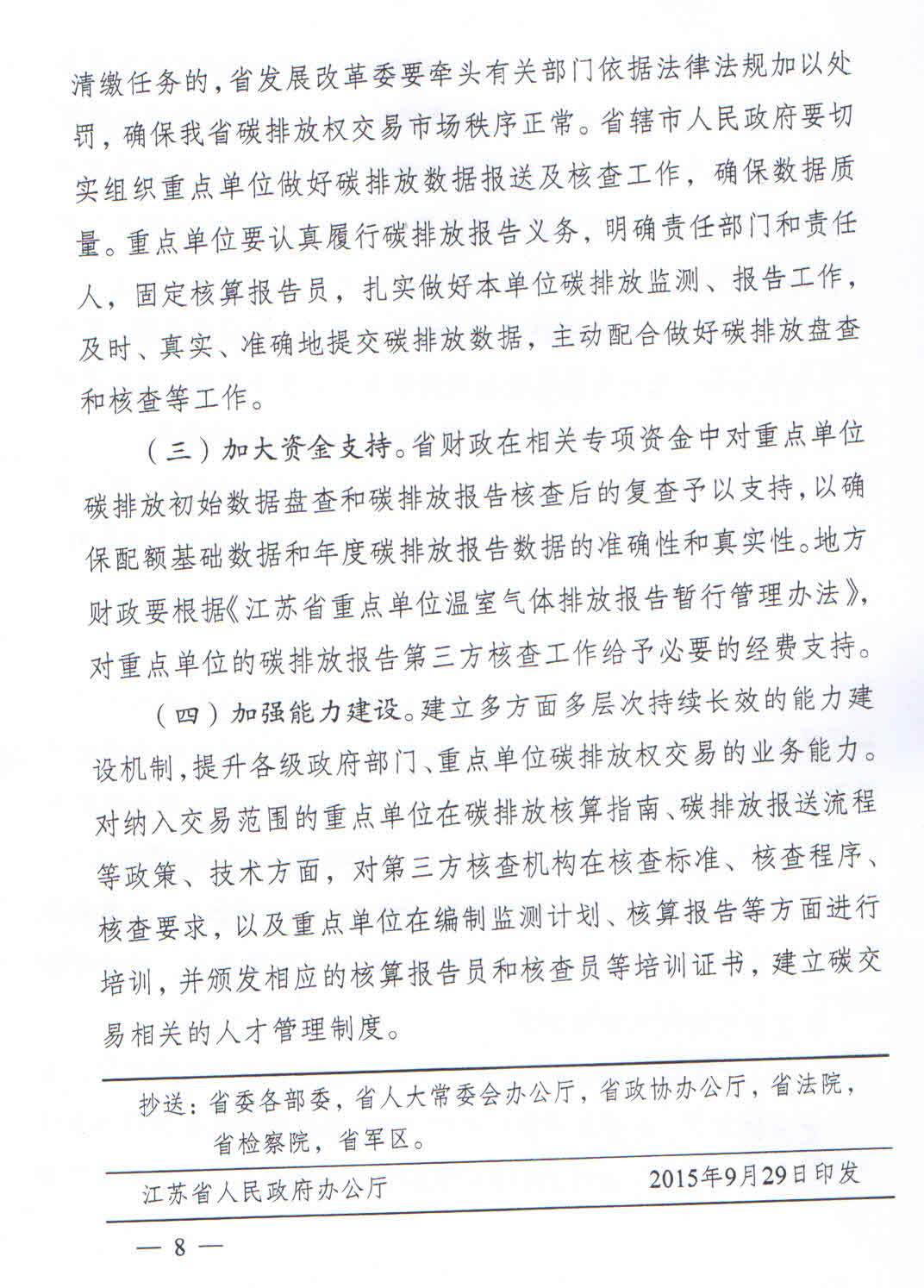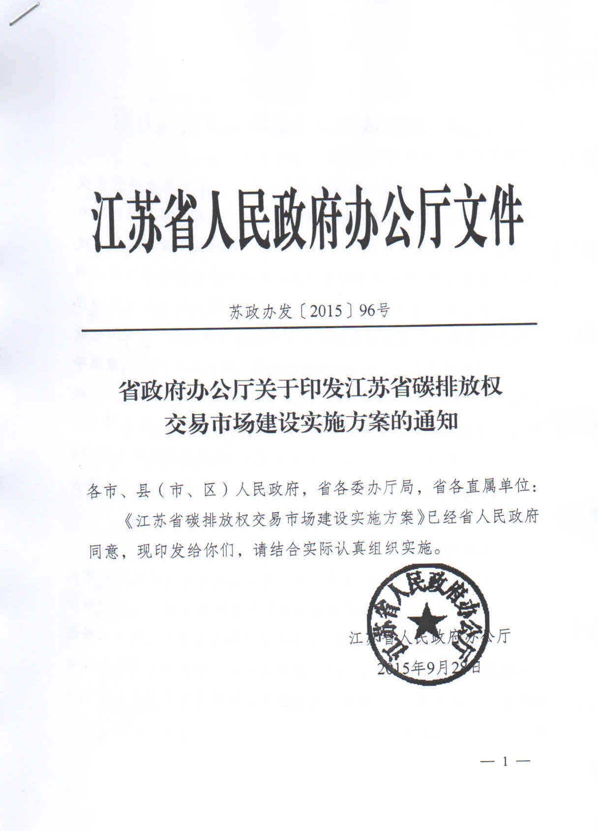 省政府办公厅关于印发江苏省碳排放权交易市场建设实施方案的通知